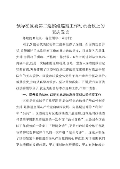 【七哥公文】2025年:领导在区委第二巡察组巡察工作动员会议上的表态发言+更多免费公文+VX:QiGeGongWen2024