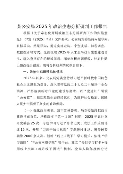 / 【七哥公文】2025年:某公安局2025年政治生态分析研判工作报告+更多免费公文+VX:QiGeGongWen2024