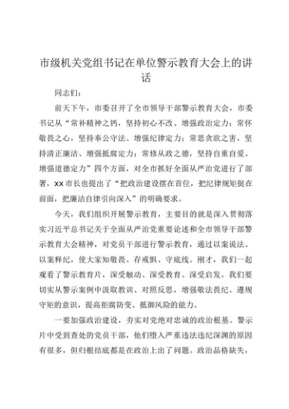 / 【七哥公文】2025年:市级机关党组书记在单位警示教育大会上的讲话+更多免费公文+VX:QiGeGongWen2024