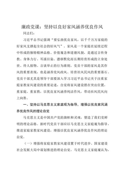 / 【七哥公文】2025年:廉政党课讲稿:坚持以良好家风涵养优良作风(1)+更多免费公文+VX:QiGeGongWen2024