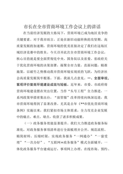 / 【七哥公文】2025年:市长在全市营商环境工作会议上的讲话+更多免费公文+VX:QiGeGongWen2024