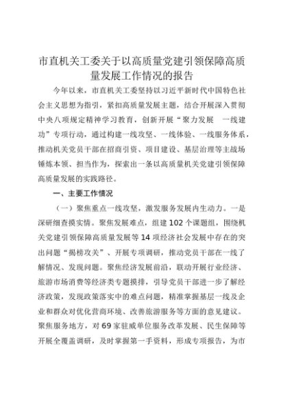 【七哥公文】2025年:市直机关工委关于以高质量党建引领保障高质量发展工作情况的报告(1)+更多免费公文+VX:QiGeGongWen2024