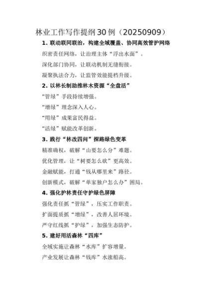 【七哥公文】2025年:林业工作写作提纲30例(20250909)(1)+更多免费公文+VX:QiGeGongWen2024