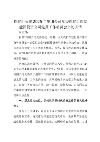 【七哥公文】2025年:巡察组长在2025年集团公司党委巡察组巡察能源投资公司党委工作动员会上的讲话(1)+更多免费公文+VX:QiGeGongWen2024