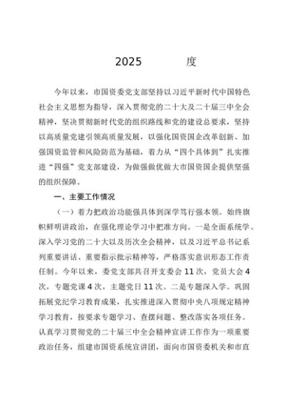 / 【七哥公文】2025年:市国资委党支部2025年前三季度党建工作总结+更多免费公文+VX:QiGeGongWen2024