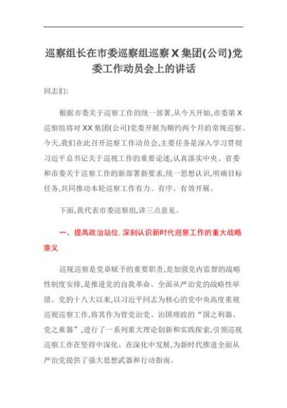 【七哥公文】2025年:巡察组长在市委巡察组巡察X集团(公司)党委工作动员会上的讲话(1)+更多免费公文+VX:QiGeGongWen2024