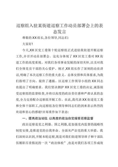 / 【七哥公文】2025年:巡察组入驻某街道巡察工作动员部署会上的表态发言+更多免费公文+VX:QiGeGongWen2024