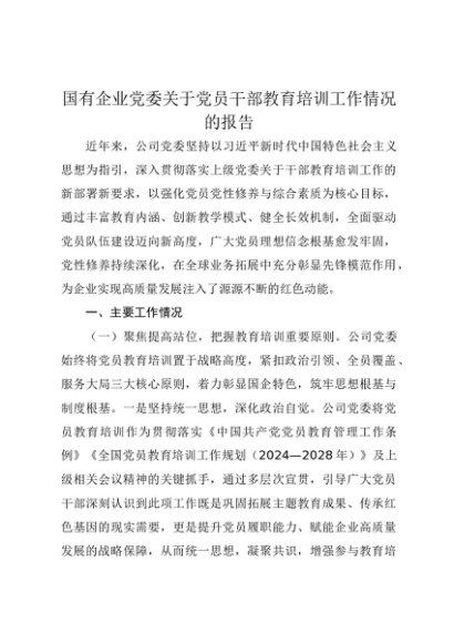 / 【七哥公文】2025年:国有企业党委关于党员干部教育培训工作情况的报告+更多免费公文+VX:QiGeGongWen2024