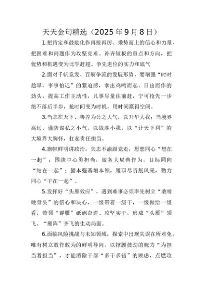 / 【七哥公文】2025年:天天金句精选(2025年9月8日)(1)+更多免费公文+VX:QiGeGongWen2024