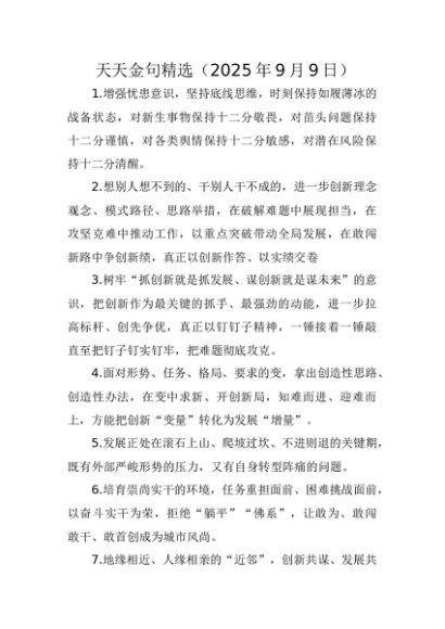 【七哥公文】2025年:天天金句精选(2025年9月9日)+更多免费公文+VX:QiGeGongWen2024
