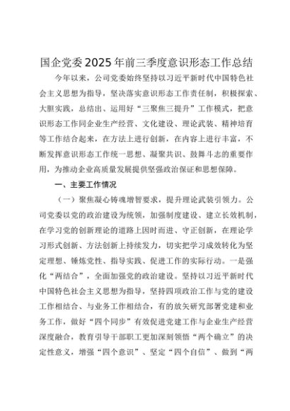 【七哥公文】2025年:国企党委2025年前三季度意识形态工作总结(1)+更多免费公文+VX:QiGeGongWen2024