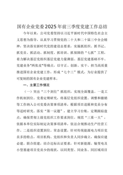 / 【七哥公文】2025年:国有企业党委2025年前三季度党建工作总结+更多免费公文+VX:QiGeGongWen2024