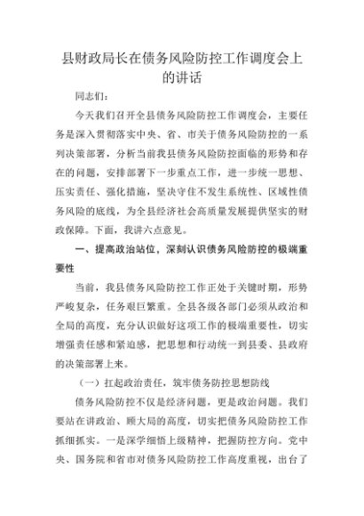 【七哥公文】2025年:县财政局长在债务风险防控工作调度会上的讲话(1)+更多免费公文+VX:QiGeGongWen2024
