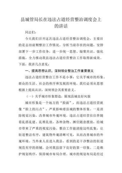 / 【七哥公文】2025年:县城管局长在违法占道经营整治调度会上的讲话+更多免费公文+VX:QiGeGongWen2024