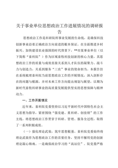 / 【七哥公文】2025年:关于事业单位思想政治工作进展情况的调研报告+更多免费公文+VX:QiGeGongWen2024