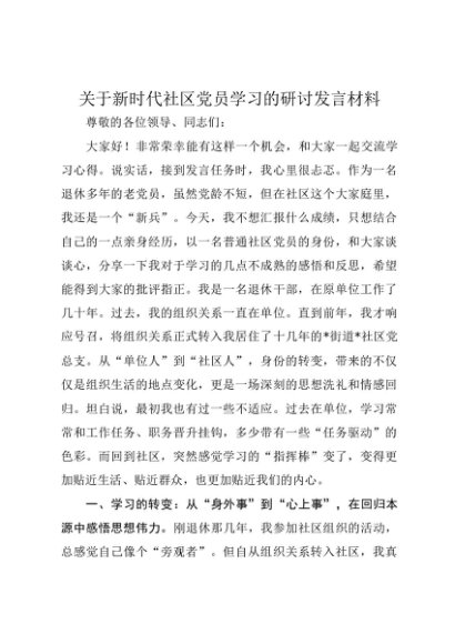 / 【七哥公文】2025年:关于新时代社区党员学习的研讨发言材料(1)+更多免费公文+VX:QiGeGongWen2024