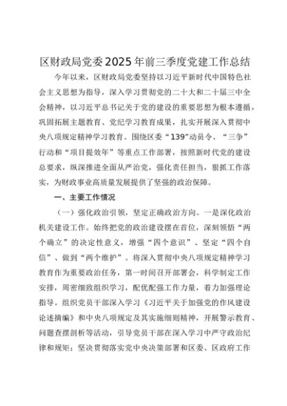 【七哥公文】2025年:区财政局党委2025年前三季度党建工作总结(1)+更多免费公文+VX:QiGeGongWen2024