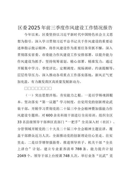 【七哥公文】2025年:区委2025年前三季度作风建设工作情况报告(1)+更多免费公文+VX:QiGeGongWen2024