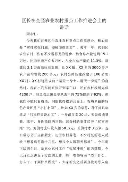 / 【七哥公文】2025年:区长在全区农业农村重点工作推进会上的讲话(1)+更多免费公文+VX:QiGeGongWen2024