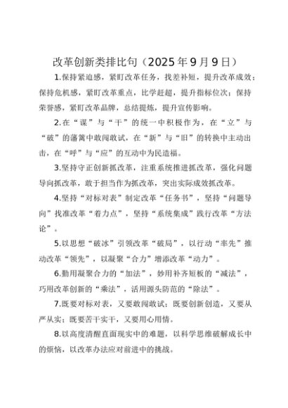 / 【七哥公文】2025年:改革创新类排比句(2025年9月9日)(1)+更多免费公文+VX:QiGeGongWen2024
