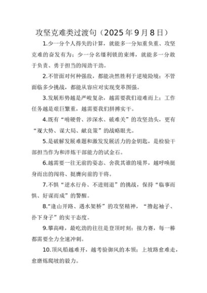 / 【七哥公文】2025年:攻坚克难类过渡句(2025年9月8日)+更多免费公文+VX:QiGeGongWen2024