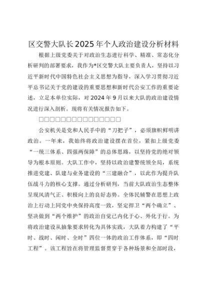 【七哥公文】2025年:区交警大队长2025年个人政治建设分析材料(1)+更多免费公文+VX:QiGeGongWen2024