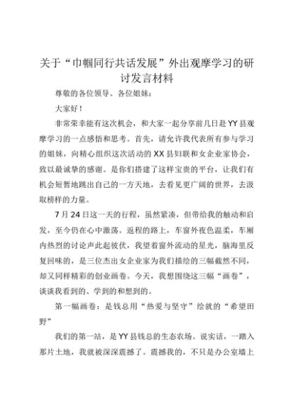 【七哥公文】2025年:关于“巾帼同行共话发展”外出观摩学习的研讨发言材料(学习心得体会)(1)+更多免费公文+VX:QiGeGongWen2024