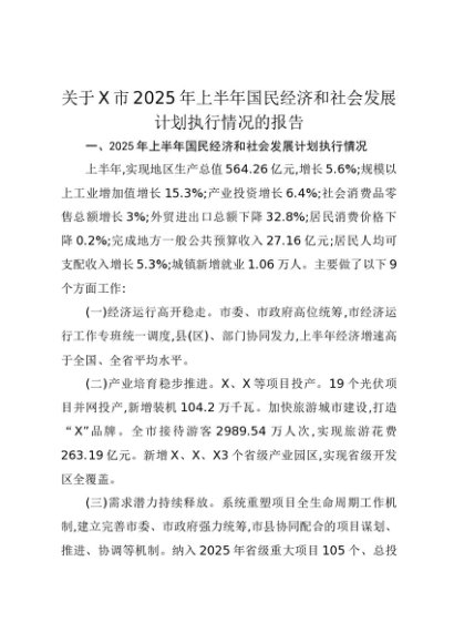 【七哥公文】2025年:关于X市2025年上半年国民经济和社会发展计划执行情况的报告(1)+更多免费公文+VX:QiGeGongWen2024