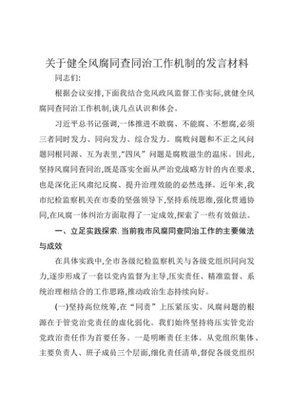 / 【七哥公文】2025年:关于健全风腐同查同治工作机制的发言材料+更多免费公文+VX:QiGeGongWen2024
