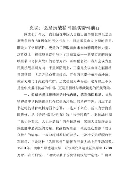 / 【七哥公文】2025年:党课讲稿:弘扬抗战精神 继续奋楫前行(1)+更多免费公文+VX:QiGeGongWen2024