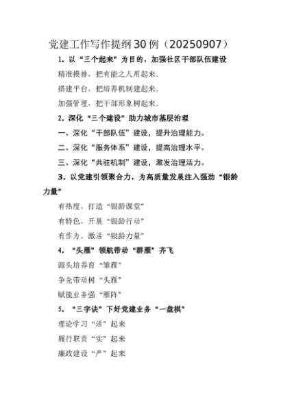 【七哥公文】2025年:党建工作写作提纲30例(20250907)(1)+更多免费公文+VX:QiGeGongWen2024