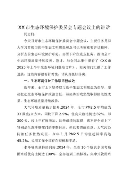 / 【七哥公文】2025年:XX市生态环境保护委员会专题会议上的讲话(1)+更多免费公文+VX:QiGeGongWen2024