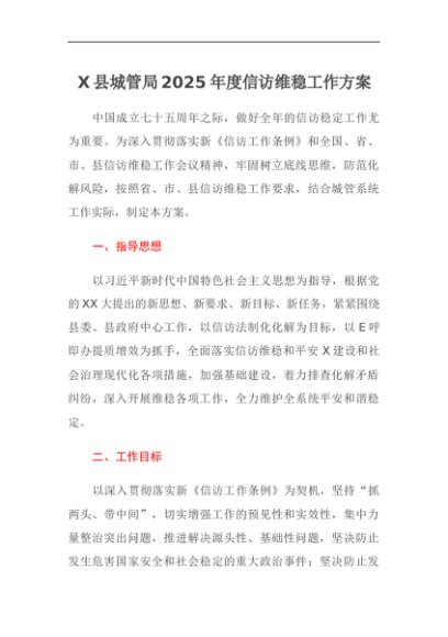 / 【七哥公文】2025年:X县城管局2025年度信访维稳工作方案+更多免费公文+VX:QiGeGongWen2024
