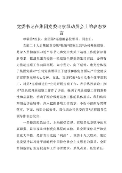 【七哥公文】2025年:党委书记在集团党委巡察组动员会上的表态发言(1)+更多免费公文+VX:QiGeGongWen2024