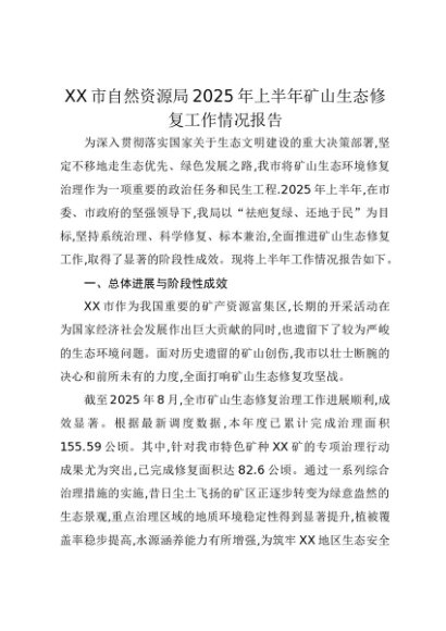 【七哥公文】2025年:XX市自然资源局2025年上半年矿山生态修复工作情况报告(1)+更多免费公文+VX:QiGeGongWen2024
