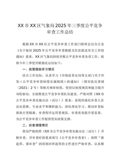 【七哥公文】2025年:XX市XX区气象局2025年三季度公平竞争审查工作总结(1)+更多免费公文+VX:QiGeGongWen2024