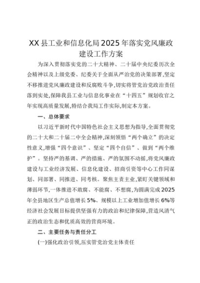 【七哥公文】2025年:XX县工业和信息化局2025年落实党风廉政建设工作方案+更多免费公文+VX:QiGeGongWen2024