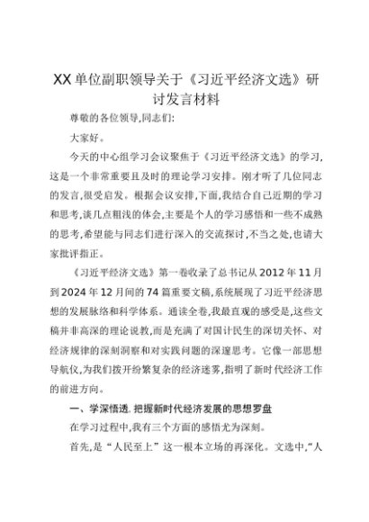 【七哥公文】2025年:XX单位副职领导关于《习近平经济文选》研讨发言材料3+更多免费公文+VX:QiGeGongWen2024