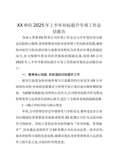 【七哥公文】2025年:XX单位2025年上半年对标提升专项工作总结报告+更多免费公文+VX:QiGeGongWen2024