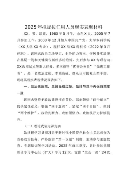 / 【七哥公文】2025年:2025年拟提拔任用人员现实表现材料+更多免费公文+VX:QiGeGongWen2024