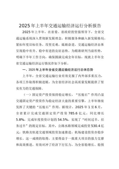 / 【七哥公文】2025年:2025年上半年交通运输经济运行分析报告(1)+更多免费公文+VX:QiGeGongWen2024