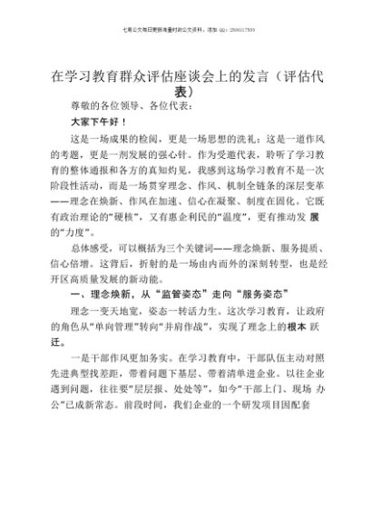 【七哥公文】2025年:在贯彻中央八项规定精神学习教育群众评估座谈会上的发言(评估代表)+更多免费公文+VX:QiGeGongWen2024