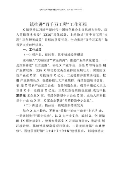 / 【七哥公文】2025年:镇推进“百千万工程”工作汇报+更多免费公文+VX:QiGeGongWen2024