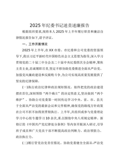 / 【七哥公文】2025年:2025年纪委书记述责述廉报告+更多免费公文+VX:QiGeGongWen2024