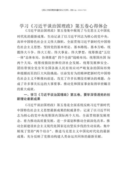 【七哥公文】2025年:学习《习近平谈治国理政》第五卷心得体会+更多免费公文+VX:QiGeGongWen2024