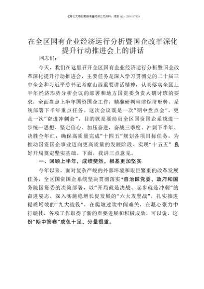 【七哥公文】2025年:在全区国有企业经济运行分析暨国企改革深化提升行动推进会上的讲话+更多免费公文+VX:QiGeGongWen2024
