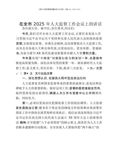 / 【七哥公文】2025年:在全市2025年人大监督工作会议上的讲话+更多免费公文+VX:QiGeGongWen2024