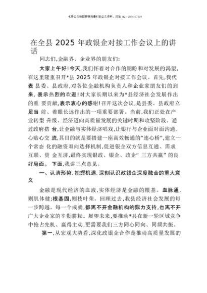 / 【七哥公文】2025年:在全县2025年政银企对接工作会议上的讲话+更多免费公文+VX:QiGeGongWen2024