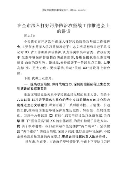 / 【七哥公文】2025年:在全市深入打好污染防治攻坚战工作推进会上的讲话+更多免费公文+VX:QiGeGongWen2024