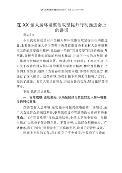 / 【七哥公文】2025年:在XX镇人居环境整治攻坚提升行动推进会上的讲话+更多免费公文+VX:QiGeGongWen2024